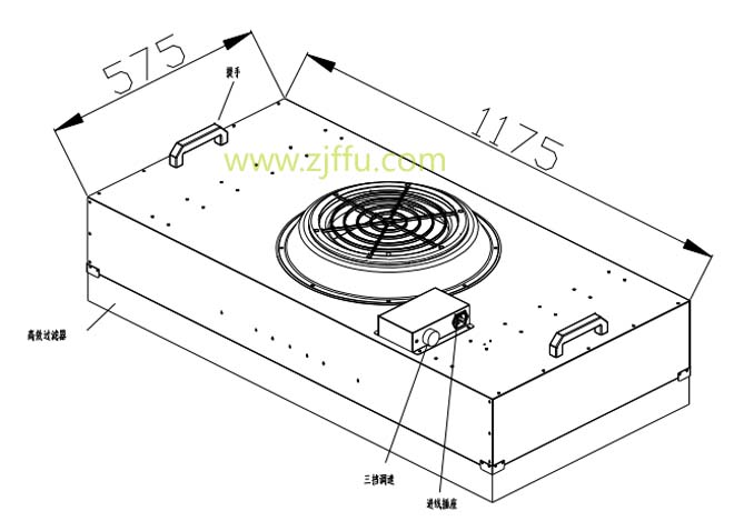 2、型號:ZJ-400-575*575標準FFU圖紙|標準FFU設(shè)計圖