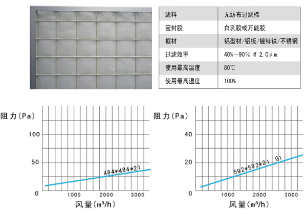 1.采用初效無紡布平鋪于框架內,濾料雙面金屬網固定。